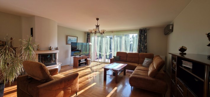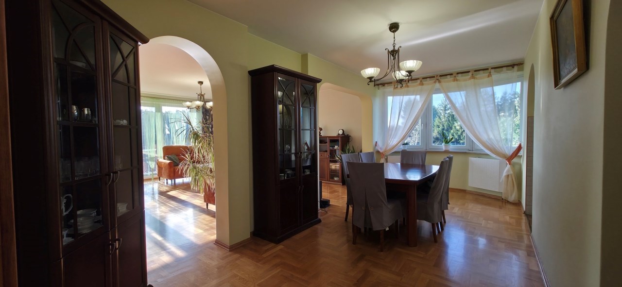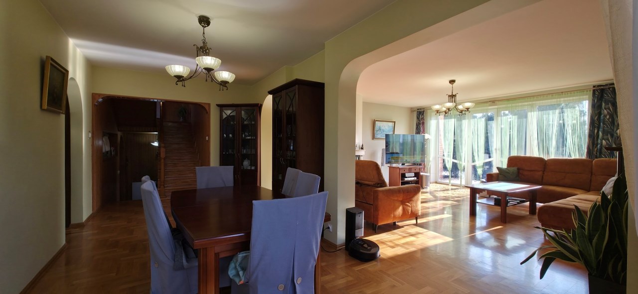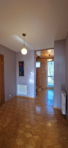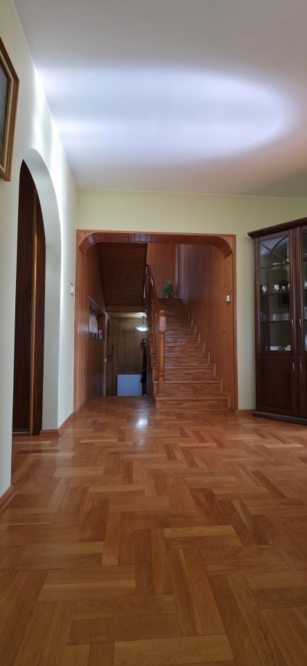 Parter: salon z jadalnią, 3 pokoje, kuchnia, 2 łazienki, garderoba, przedpokój, wiatrołap.