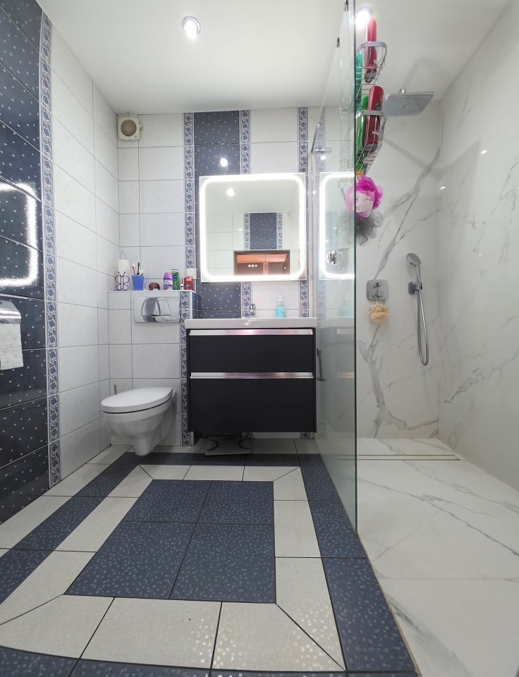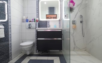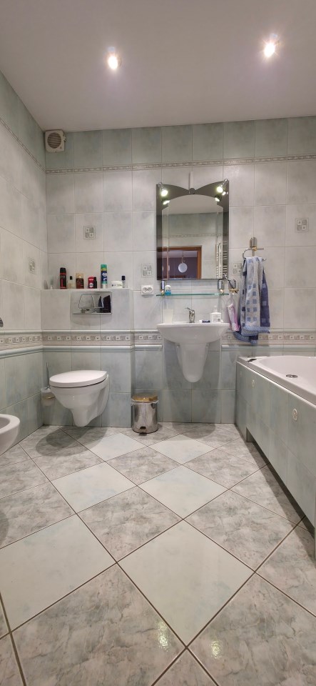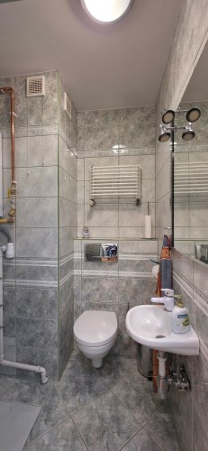 Wyposażenie łazienki kabina prysznicowa, lustro, natrysk, pralka, umywalka, wanna, WC