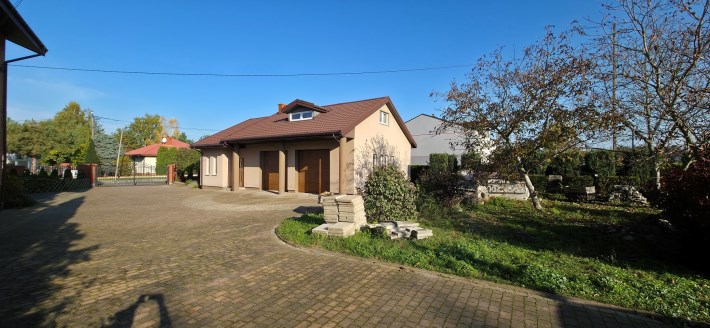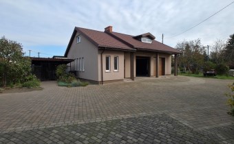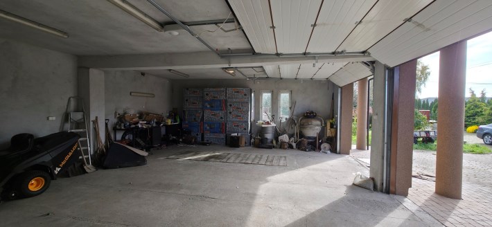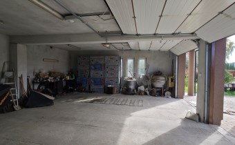 Murowany budynek gospodarczy z poddaszem o powierzchni całkowitej 175 mkw. kryty blachodachówką.