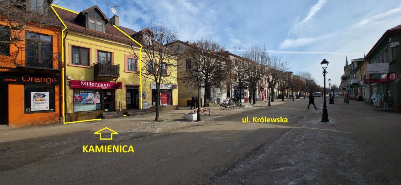 Sprzedam kamienicę w ścisłym centrum Kutna, przy ul. Królewskiej. Powierzchnia całkowita ok. 180 mkw., na trzech kondygnacjach. Parter - 2 lokale usługowe - aktualnie wynajęte. I i II piętro - mieszkalne: 3 pokoje, kuchnia z jadalnią, 2 łazienki. Bardzo solidny budynek z cegły. Stropy drewniane. Centralne ogrzewanie olejowe. Klimatyzacja. Okna PCV. Dach kryty blachodachówką. Kanalizacja miejska. Woda miejska. Budynek nie podlega nadzorowi konserwatora zabytków. Elewacja w Gminnym Rejestrze Zabytków. Powierzchnia działki 137 mkw. + udział 1/2 w działce o powierzchni 117 mkw. - wjazd i trawnik przy budynku. Na terenie garaż z kotłownią. Dojazd od ul. Joselewicza. Teren ogrodzony.