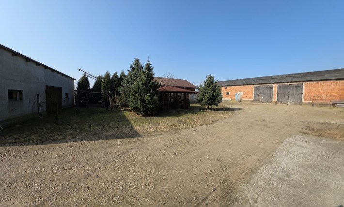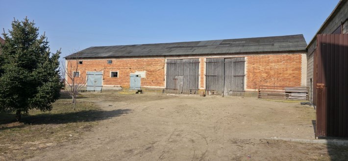 Murowane budynki gospodarcze o łącznej powierzchni 750 mkw., wyposażone w wodę i prąd trójfazowy.