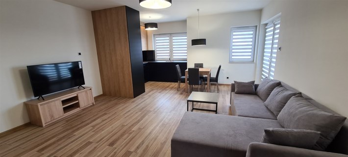 Wykończone w dobrym standardzie. Lodówka z zamrażarką, kuchnia indukcyjna, zmywarka, piekarnik. TV cyfrowa naziemna. Miejsce parkingowe przy budynku. Plac zabaw i teren rekreacyjny. W pobliżu galeria handlowa, aquapark i tereny sportowe.