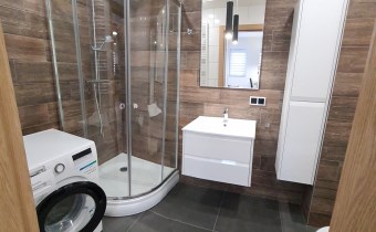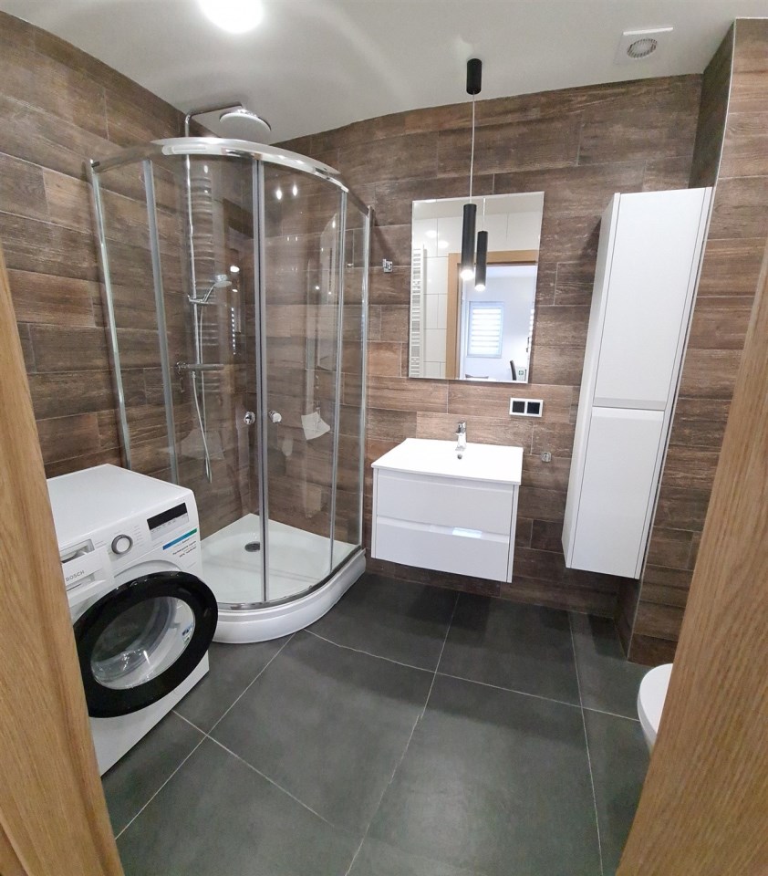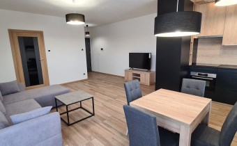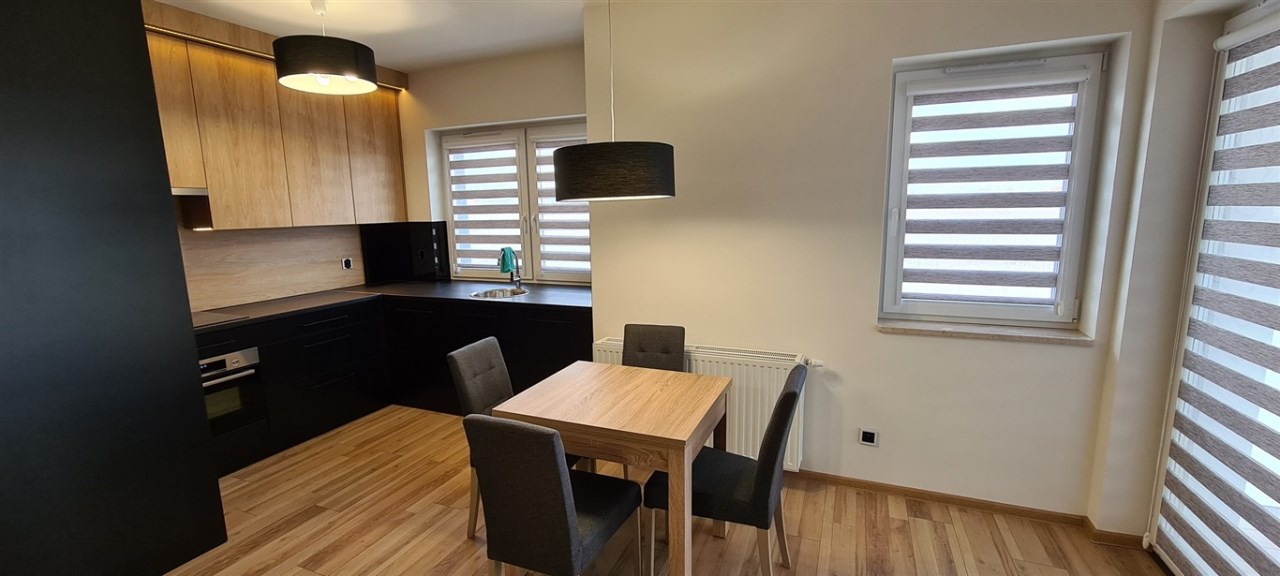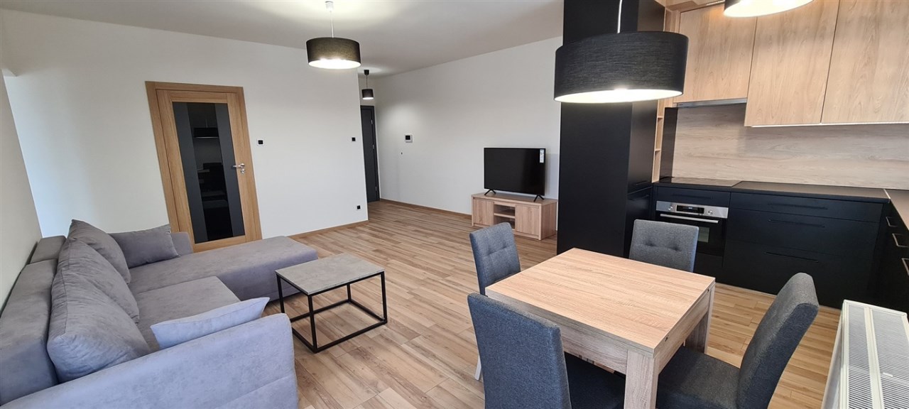 Wykończone w dobrym standardzie. Lodówka z zamrażarką, kuchnia indukcyjna, zmywarka, piekarnik. TV cyfrowa naziemna. Miejsce parkingowe przy budynku. Plac zabaw i teren rekreacyjny. W pobliżu galeria handlowa, aquapark i tereny sportowe.