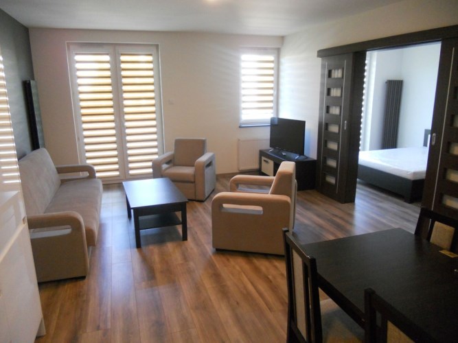 Wynajmę mieszkanie w Kutnie przy ul. Sobieskiego 18. Nowy budynek. II piętro, 50 mkw, salon z aneksem kuchennym, sypialnia, łazienka z wc., duży balkon. Umeblowanie i wyposażenie w dobrym standardzie. Telewizor LCD, pralka, lodówka, kuchnia indukcyjna, zmywarka, piekarnik. Możliwość podłączenia telewizji kablowej i internetu na koszt najemcy. Miejsce parkingowe przy budynku na terenie zamkniętym z bramą na pilota. Blisko do centrum Kutna. Dobry dojazd do strefy przemysłowej. W pobliżu sklepy, apteki, restauracja, przychodnia lekarska, park, kino.